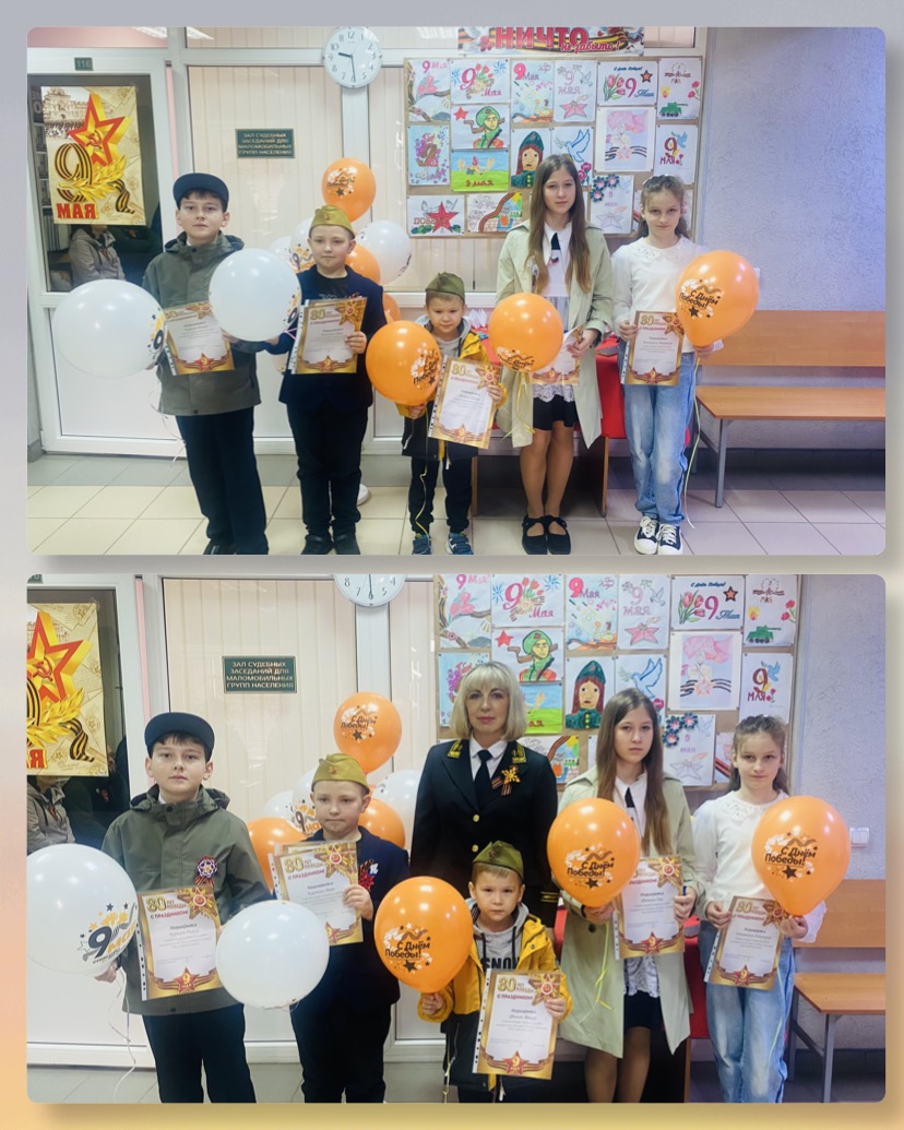 9 мая 2025 года в Лямбирском районном суде состоялось подведение итогов конкурса творческих работ посвященного 80-тилетию победы в Великой Отечественной Войне. Конкурс проводился среди детей судей и работников аппарата суда. В конкурсе приняли участие ребята разных возрастов – от самых маленьких, до подростков. Детское творчество показало, что память о подвиге наших предков жива, что новое поколение помнит и чтит историю своей страны. Победители для награждения были приглашены в здание суда, грамоты и сладкие призы вручал председатель суда Фролова Наталья Викторовна и пожелала юным художникам успехов в творчестве. |