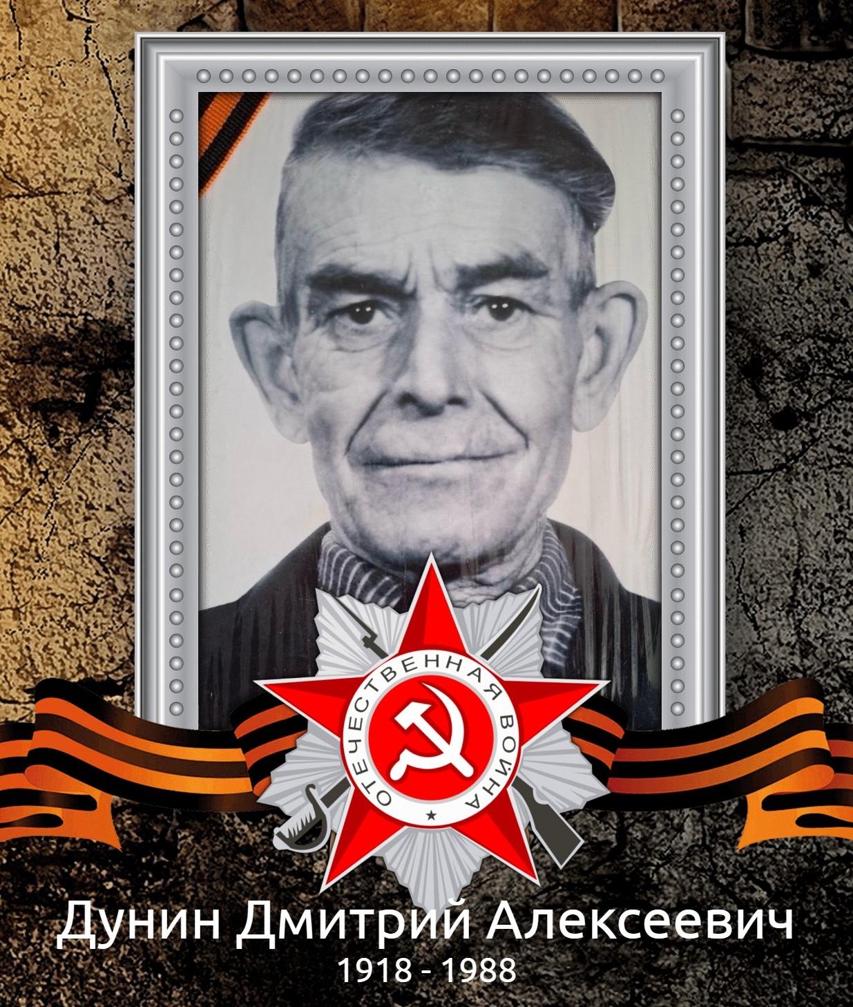 Дмитрий Алексеевич родился в 1918 году в селе Каймар, расположенном в Старосиндровском сельском поселении Краснослободского района Мордовской АССР. Во время Великой Отечественной войны служил в 2-й гвардейской воздушно-десантной дивизии и 62-й стрелковой дивизии, получив звания красноармейца и гвардии сержанта. За образцовое выполнение боевых заданий командования на фронте против немецких захватчиков, а также за проявленную доблесть и мужество, Дмитрий Алексеевич был награжден Орденом Красной Звезды по приказу 2-й гвардейской воздушно-десантной проскуровской дивизии № 0141/н от 20 мая 1945 года. Кроме того, он получил Орден Отечественной войны II степени по приказу № 84 от 6 апреля 1985 года. Дунин Дмитрий Алексеевич скончался 4 ноября 1988 года. ![]() |