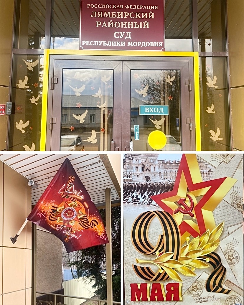 В Лямбирском районном суде в рамках подготовки к празднованию 80-й годовщины Победы в Великой Отечественной войне 1941-1945 годов было проведено праздничное оформление здания суда.